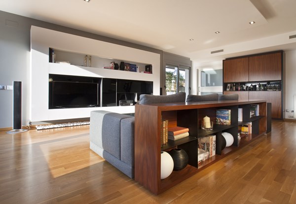 Reforma integral, con auténtico resultado de revista de interiorismo, la creada para este apartamento luminoso, abierto y muy funcional, con protagonismo de la madera, la luz y el almacenamiento a medida.